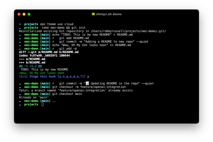 sh -c "$(curl -fsSL https://raw.github.com/robbyrussell/oh-my-zsh/master/tools/install.sh)"